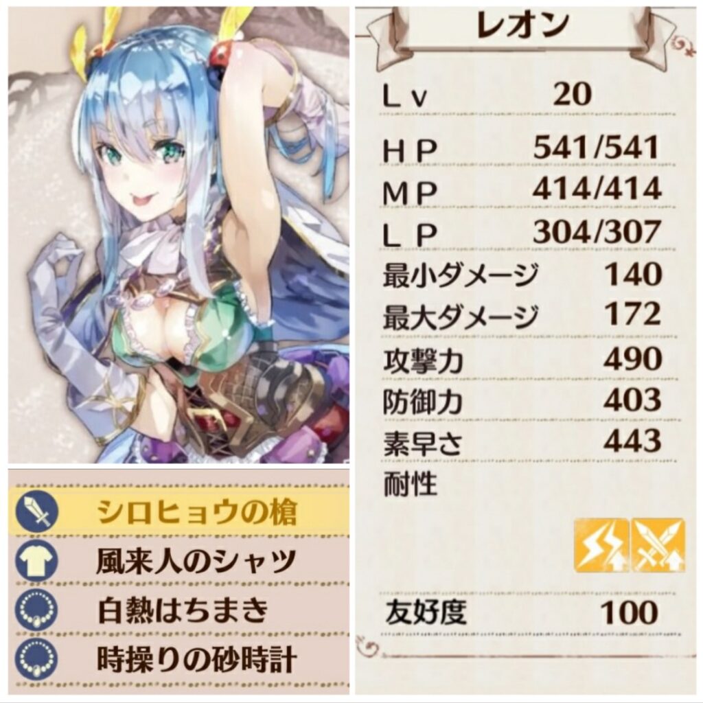 そよ風のアロマが使えるキャラから選んだ。受動スキルのHPアップで意外にも打たれ強い。