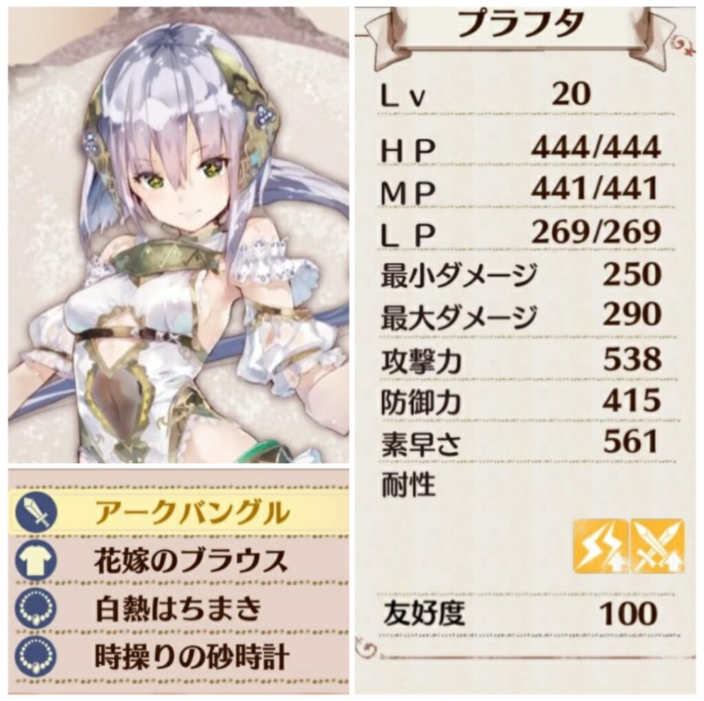 ドールメイクにより他を寄せ付けない圧倒的な攻撃力を誇る生粋のメインアタッカー。色々アイテムを使えるのだがブン殴った方が結局強い、ある意味哀しい錬金術士。