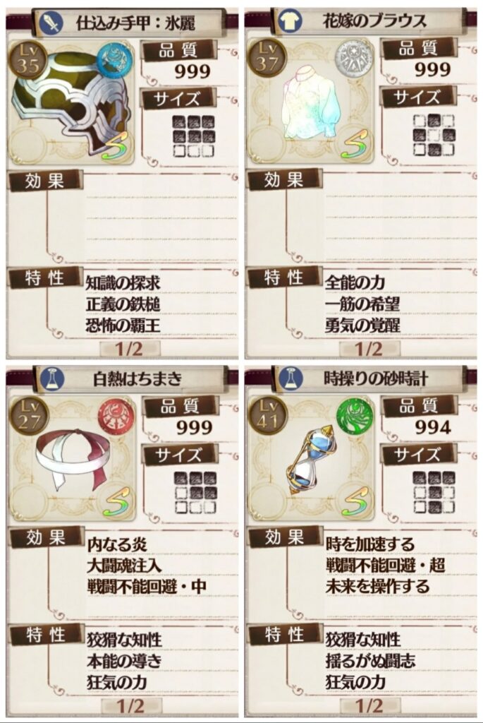 ソフィー専用弱体アイテム。これがないと忘却の影から受けるダメージが半端ないので必須。