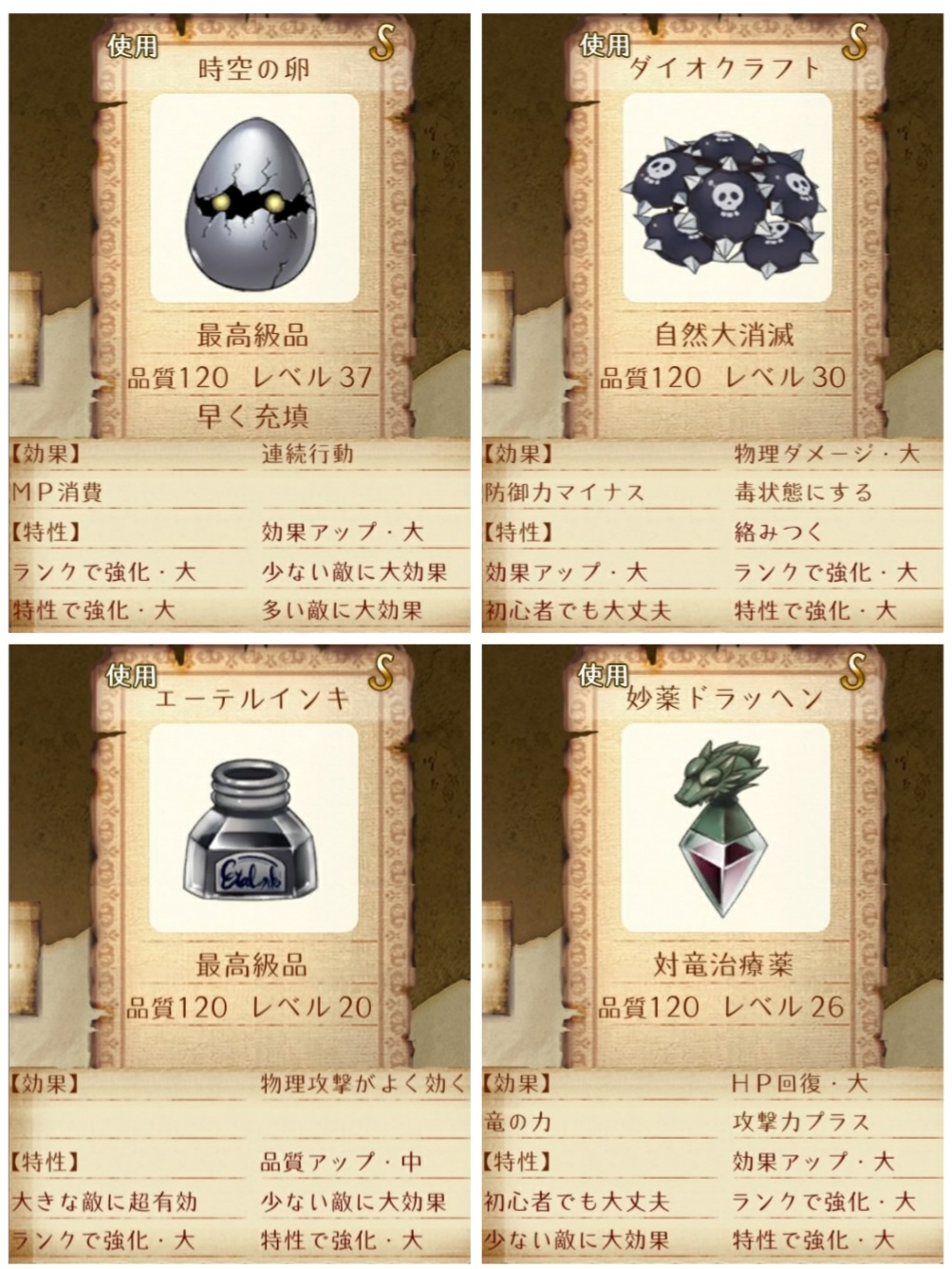 右はMP回復兼必殺技ゲージ溜め用。時空の卵後に使う。この構成だとトトリのMPをデュプリケイト3回分確保でき、量販店登録しても特性を残せる。