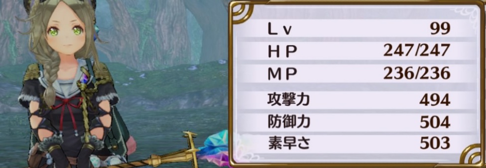 直接戦闘では使わないが岩破壊用。リーゼントレーネの超固い岩も1発で壊せる。