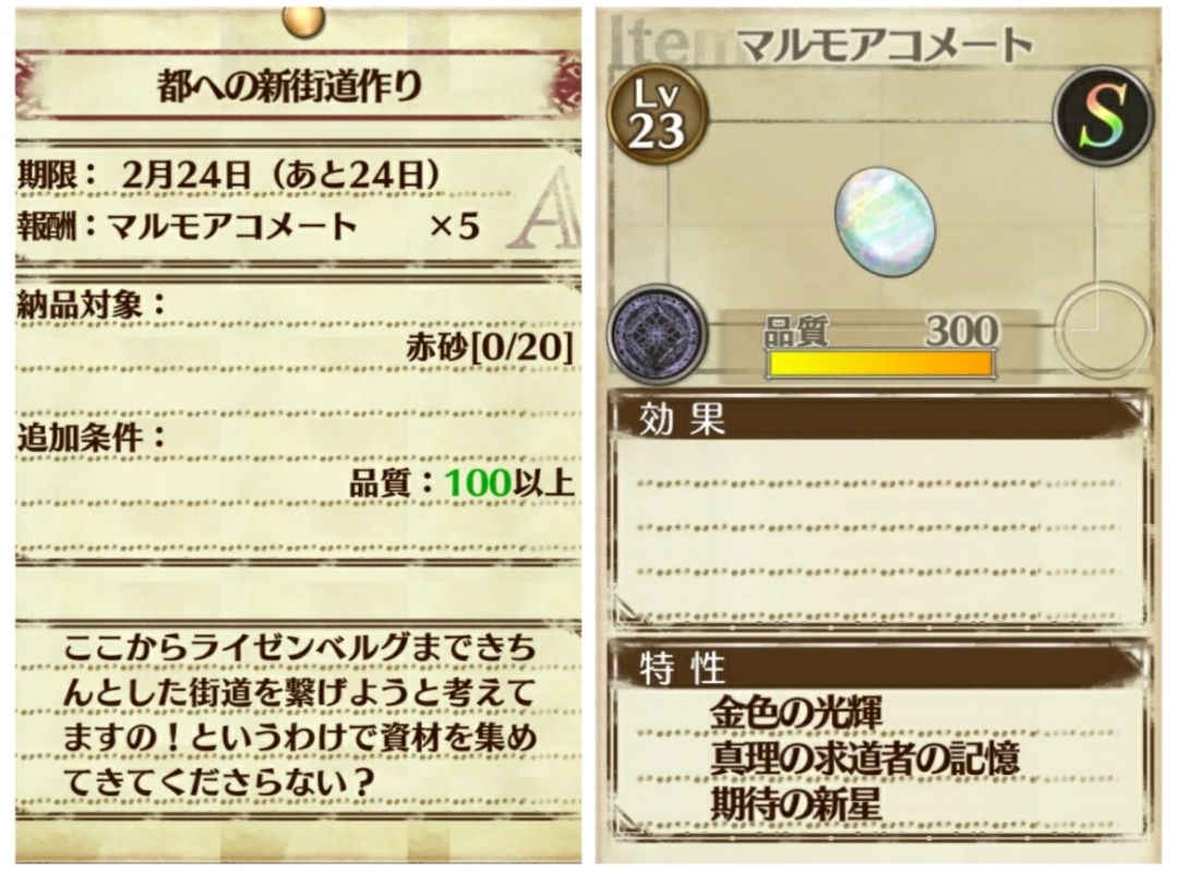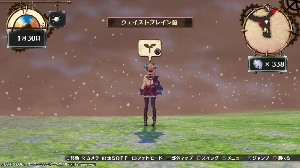 ウェイストブレイン前の砂嵐で赤砂を採取。必ず採取できる訳ではないうえに品質条件もあるので何度もクラーデル平原を出入りする必要がある。
