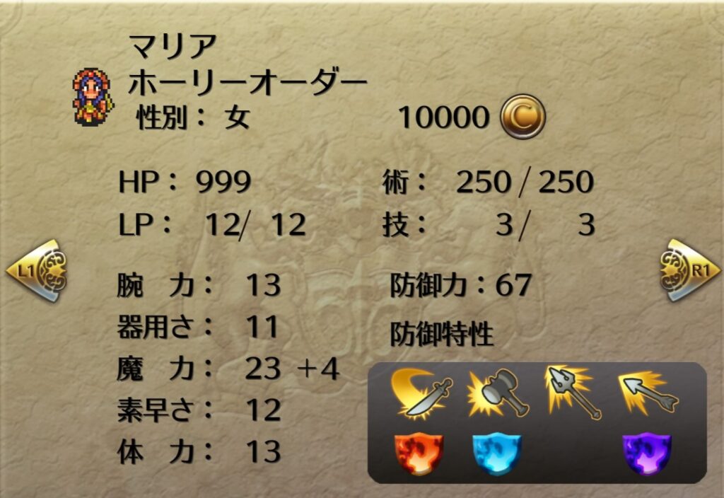 術威力は47。魔力はソフィアの方が高いが、理力の関係で実際の術の威力はマリアの方が強い。